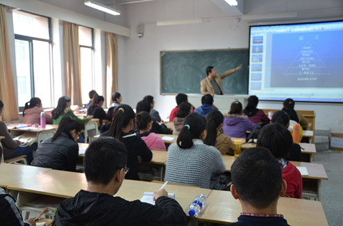 10月18日学院邀请资深职业经理人甘肃庆阳大厦总经理杨彬在10 A302教室给2013级酒店管理专业和旅游管理专业100余人上专业导引课《饭店管理者之路》。