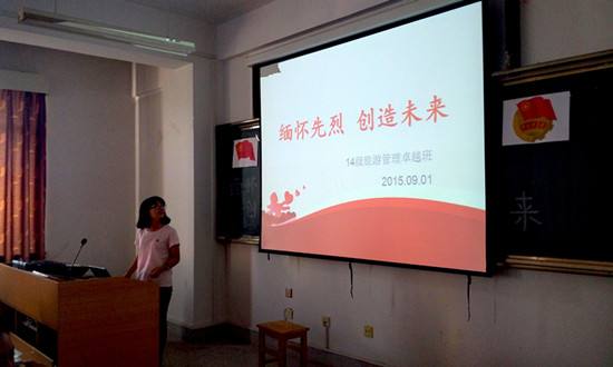 为了纪念抗战胜利七十周年,我院旅游管理卓越班在我院组织的举办了主题“为缅怀先烈,创造未来”的团组织活动。