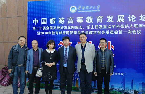 由教育部旅游管理类专业教学指导委员会、全国高等学校旅游院校联盟(G100联盟)主办,华南理工大学经济与贸易学院(旅游与酒店管理学院)承办的全国高校十大靠谱外围买球网站院长(系主任及重点学科带头人)联席会暨2018年教育部旅游管理类专业教学指导委员会第一次会议于3月9日在华南理工大学召开,来自全国开设旅游管理、酒店管理、会展管理等专业的近200所院校、400余名代表参加此次会议。教育部高等学校旅游管理专业教学指导委员会委员、院长把多勋教授,副院长王耀斌副教授及各系主任参加了此次会议。