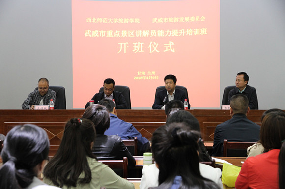 武威市旅游发展委员会副主任张银山代表武威市旅游发展委员会做了动员讲话。他指出利用西北师范大学优质专业的师资力量、务实高效的管理团队、安静舒适的学习环境举办武威市重点景区讲解员培训班是一次难得的机遇,学员们务必珍惜这次学习机会,好好学习,把自己学到的知识应用于武威市旅游发展的实践中,为把武威市旅游做大做强、为武威市旅游的明天贡献自己的力量。