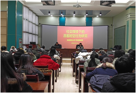 2018年12月11日上午,应学院邀请,陕西师范大学地理科学与十大靠谱外围买球网站博士生导师李君轶教授在教学10号楼C区7楼报告厅做了主题为“社交媒体下的游客时空行为研究”的学术报告,学院全体研究生、旅游管理和文化产业管理专业部分本科生及教师聆听了学术报告会。报告会由旅游管理系主任欧阳正宇老师主持。