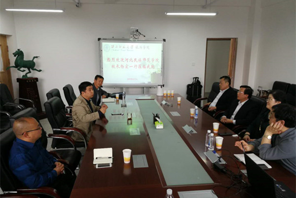 2019年4月11日下午,河北民族师范学院校长杨宏、教务处处长李克军、党政办秘书科科长张海鹏一行来院调研座谈。学院党委书记李发舜、院长把多勋、副院长王耀斌、副书记谢致远和办公室负责人参加了调研座谈。