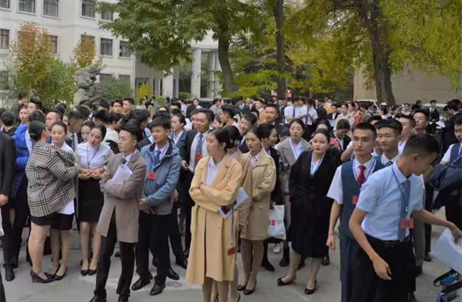 为提高我校旅游管理(航空服务校企合作)专业学生就业率,2019年10月23日,应北京广慧金通教育科技有限公司和十大靠谱外围买球网站邀请,青岛航空股份有限公司赴兰州进行校园专场招聘活动,此次招聘主要针对西北师范大学、兰州城市学院、青海师范大学、西安翻译学院、甘肃交通职业技术学院、甘肃工业职业技术学院六所旅游管理(航空服务校企合作)专业院校空乘专业学生,共有600余名学生参加了此次面试。