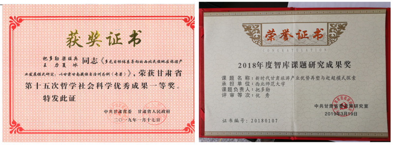 经过二十年的不懈努力,学院已形成丝绸之路旅游与文化研究、西北生态旅游研究、西北民族旅游研究和区域旅游研究等四个特色鲜明的研究方向,已完成和在研国家社科规划项目和国家自然科学基金项目等国家级科研项目16项,教育部人文社会科学和甘肃省哲学与社会科学规划项目30余项,高端智库政策咨询类和应用类研究项目50余项,获得省部级及以上奖励30余项;出版各类专著与教材40余部,在新华文摘、光明日报、民族研究、旅游管理、旅游学刊、旅游科学、人文地理等CSSCI期刊上发表了一大批具有标志性的科学研究成果;学院旅游管理学科连续三年进入中国科学评价研究中心排行榜“优势学科”序列,2003-2016年Top100旅游院校和科研机构排名25位。
