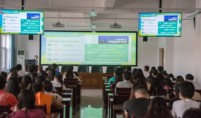 随后,粉笔蓝天科技甘肃分校的宣讲人就公司规模,未来发展趋势,薪资福利待遇及岗位需求等信息对同学们进行了宣讲。