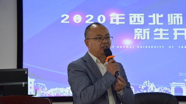 教师代表王耀斌教授代表全体老师发言,他感谢家长们的辛苦付出,教育同学们学会感恩,感谢同学们选择了西北师范大学,十大靠谱外围买球网站,鼓励同学们共同为学校学院的发展增砖添瓦;感谢每位同学学习时的坚忍不拔;勉励同学们通过学习再学习充实自己的大学生涯。