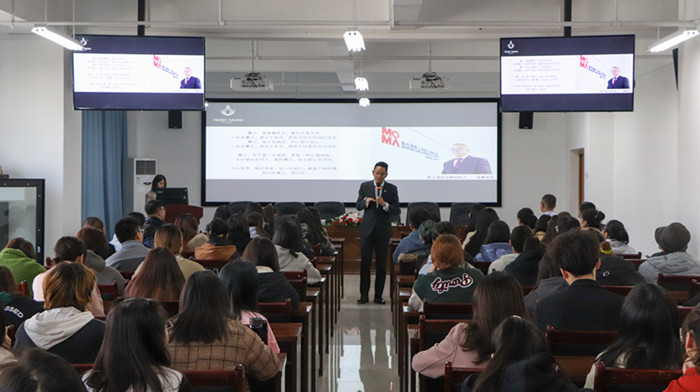 蔓兰酒店CEO廖煌智先生详细介绍了蔓兰酒店的“蔓兰”文化、企业的价值观及使命。同时为同学们分享了自己的工作经验,激励同学们“天高地阔,大有可为”。第三部分第一资产人力资源中心副总经理宋宏伟先生介绍了针对应届毕业生“蔓天星”培养计划,并为实习学生提供了培养平台。蔓兰酒店负责人精彩生动的讲述不断将现场气氛推向新的高潮。此次宣讲会不仅让同学们更加深入的了解到第一资产—蔓兰酒店的魅力,也为自己的求职之路得到了充分的启迪与帮助。
