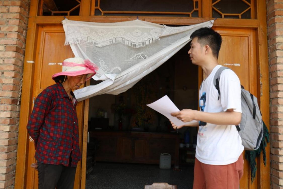 经过了七个多小时的跋山涉水,社会实践团师生一行五人顺利到达实践地点——陇南市礼县桥头镇冯家村。经过短暂休整后,团队成员穿梭在冯家村的山间小道,正式开展调研活动。本次社会实践调研主要有两项任务:一是走访调研冯家村目前乡村振兴现状,通过给村民发放关于乡村振兴满意度的调查问卷,从产业兴旺、生态宜居、乡风文明、治理有效、生活富裕五个维度上了解村民对当地乡村振兴的满意度。二是对该村村委会人员、西北师范大学帮扶驻村干部及个别村民进行深层次访谈,不断加深对该村乡村发展现状及乡村振兴存在问题的了解。