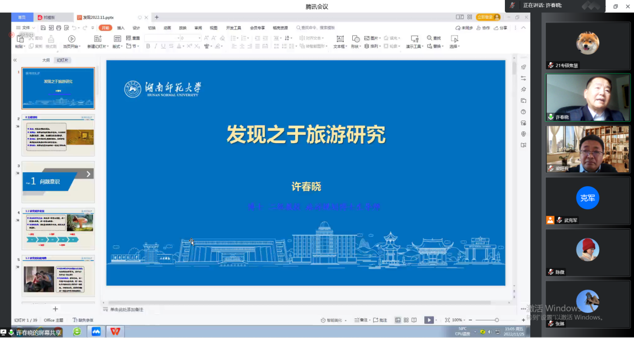 报告中,许教授特别针对关注实践的问题分享了经验,总结了当下应如何从旅游实践中发现其中存在的特殊关系、特殊规律及特殊现象。同时从生活体验出发,结合自己研究的案例分析了目前旅游研究中出现的普遍问题。最后,在批判反思中许教授谈到在研究中要抱有怀疑精神,在对成熟的理论方法的运用上更要考虑其适宜性,以及在面对经典模型时我们应如何去创新。