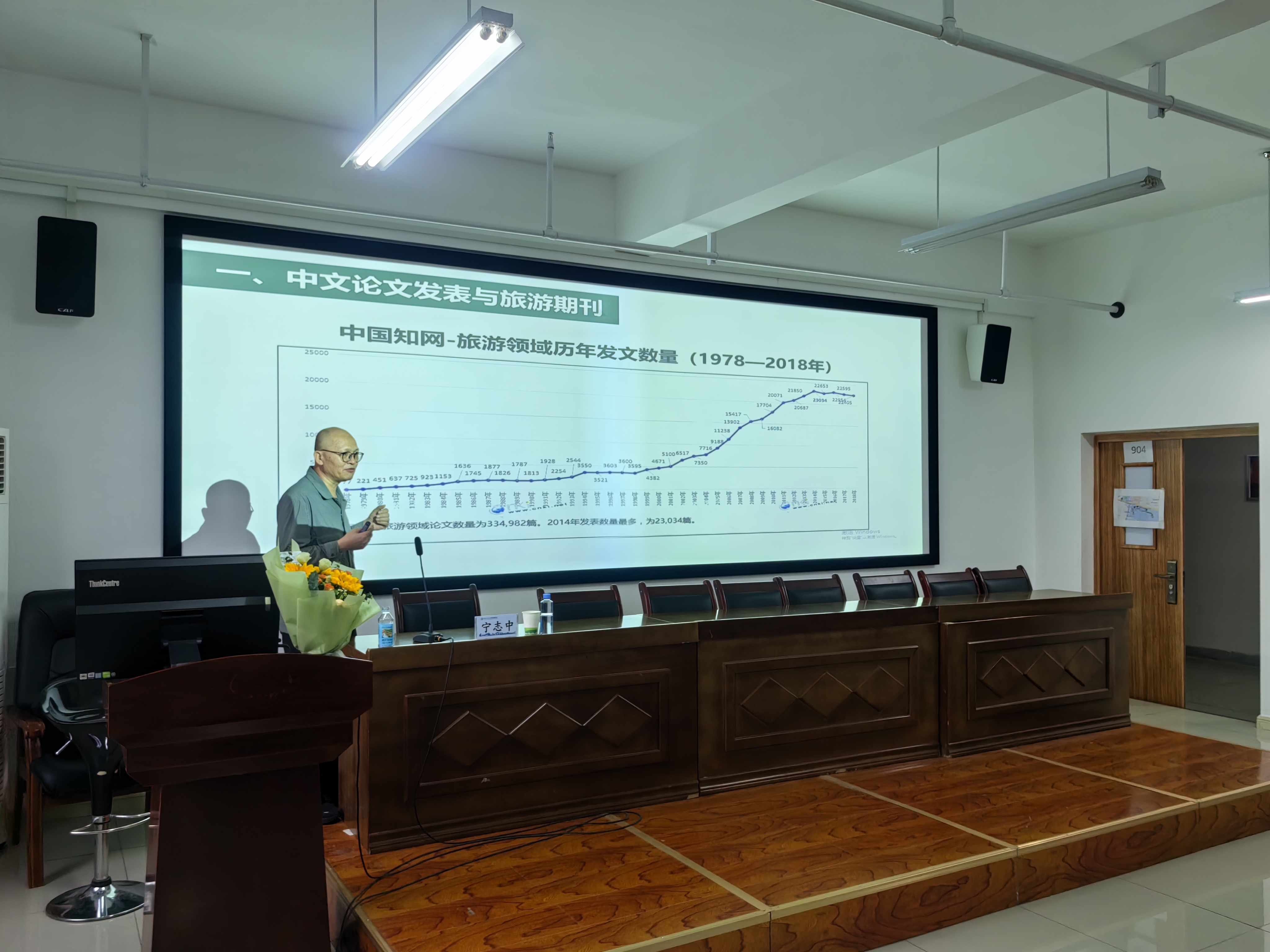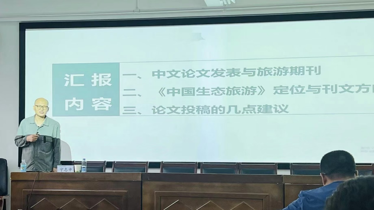 9月12日下午,应学院邀请,中国科学院地理科学与资源研究所《中国生态旅游》专职副主编,高级工程师,旅游研究与规划设计中心总规划师宁志中教授来我校做题为“《中国生态旅游》期刊关注主题与论文撰稿要求”学术报告,报告会在文科实训楼904会议室举办。此次报告由学院副院长武克军主持,相关专业老师、研究生参加了报告会。