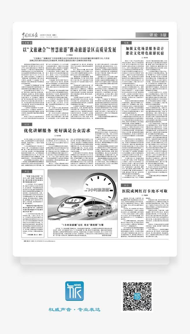 学院以旅游行业发展实际问题为导向,积极建设智库型旅游应用研究平台。我院李东泽博士紧扣民宿行业实践问题,撰文《加强文化场景服务设计 建设文化特色旅游民宿》,提出以服务设计为主线,形成了营造民宿文化场景的具体方法。文章发表于文化与旅游部主管报纸《中国旅游报》2024年10月22日期评论版。