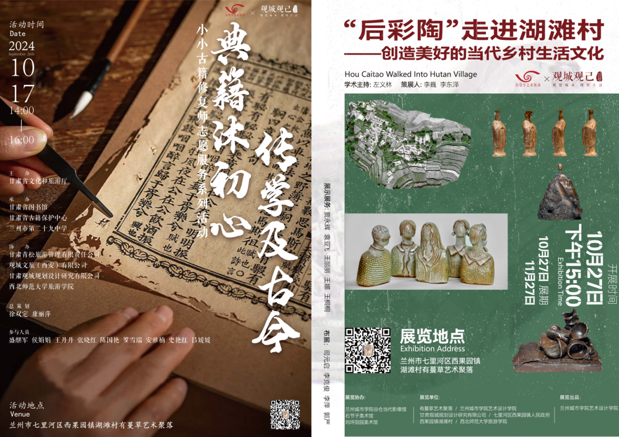 学院文化景观设计研究中心以“艺术乡建”为主线,联合省内外相关设计、研学机构,全程策划七里河区西果园镇湖滩村有蔓草艺术聚落运营方案,推动文化艺术介入乡村振兴实践。目前,有蔓草艺术聚落已开展系列创意文化活动,为探索文化艺术介入乡村旅游,塑造乡村旅游核心吸引物积累了有益经验。