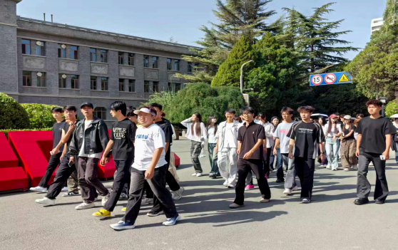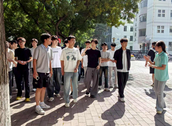 随后,志愿者们分批次带领新生从云亭校区前往知行校区,沿着校园核心地标展开游览:从如意湖,到历史悠久地三孔拱顶“智慧门”,再到承载校园精神的木铎钟、充满人文气息的和美广场,最后抵达知行校区的知行广场与创客广场。每到一处,志愿者们都耐心解说背后的故事,引导新生沉浸式感受校园风貌。